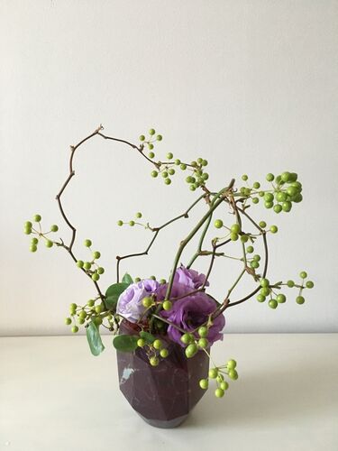 前回の残りの芍薬が散る前に、続けてもう一つ仕上げてみました。 これは前回と同じ日に活けたものなのですが、ちょっと急いで活けた感が出てますね。 でも急いで正解でした。 翌日早くも花弁が落ち始め、さらにその次の日に、見事に全滅。 結局、綺麗に咲い…